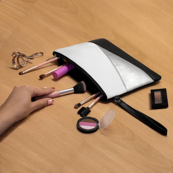 Descripción: Cosmetiquera con diseño en 3 colores. Cuenta con compartimento con cierre y una asa para transportarla. Mantén tus productos esenciales de belleza organizados y accesibles en todo momento.