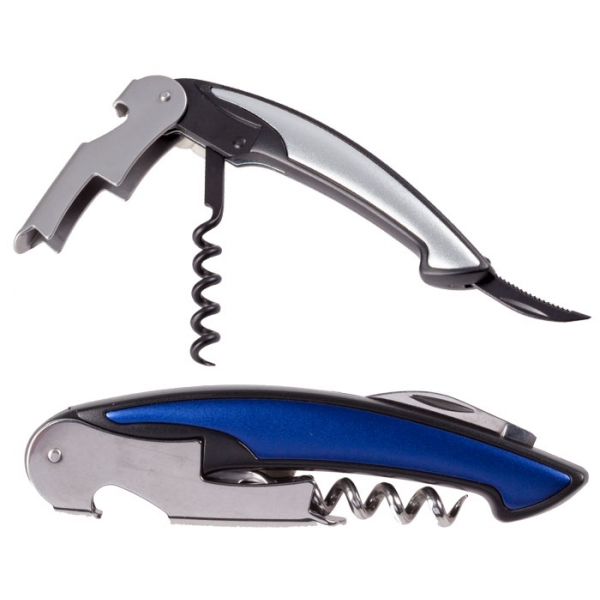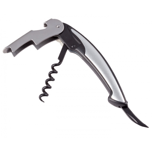 Descripción: Herramienta multifuncional con navaja, destapador de acero inoxidable, sacacorchos y navaja dentada plegable.
