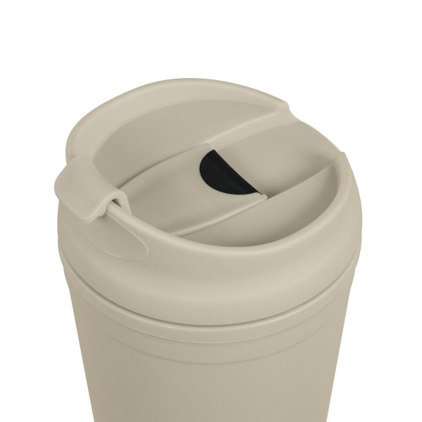 Descripción: Doble pared. Pared interna y externa de plástico. Tapa de plástico con sistema de rosca. Sobre tapa con sistema de push. Incluye popote. Cuerpo y tapa con terminado tipo rubber. Caja individual incluida.