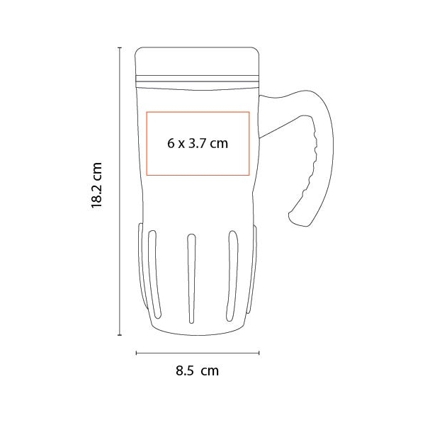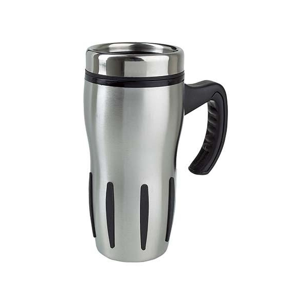 Descripción: TERMO TURBO COFFEE(Doble pared. Con barras antiderrapantes y válvula de seguridad.) - Material: Acero Inoxidable / Plástico. 425 ml.