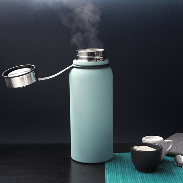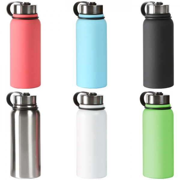 Descripción: Termo de acero inoxidable doble pared con cubierta aislante de plástico, capacidad 800 ml.