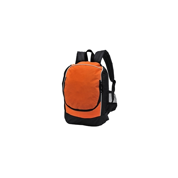 Descripción: Mochila escolar tipo back pack con bolsa de red a un costado, fabricada en loneta. Colores: negro, azul, naranja y rojo.