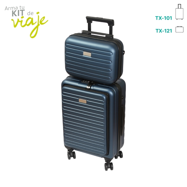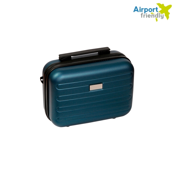 Descripción: Neceser para viaje fabricado en plástico ABS con interiores de poliéster. Incluye placa metálica para grabado láser, banda elástica y colgante.