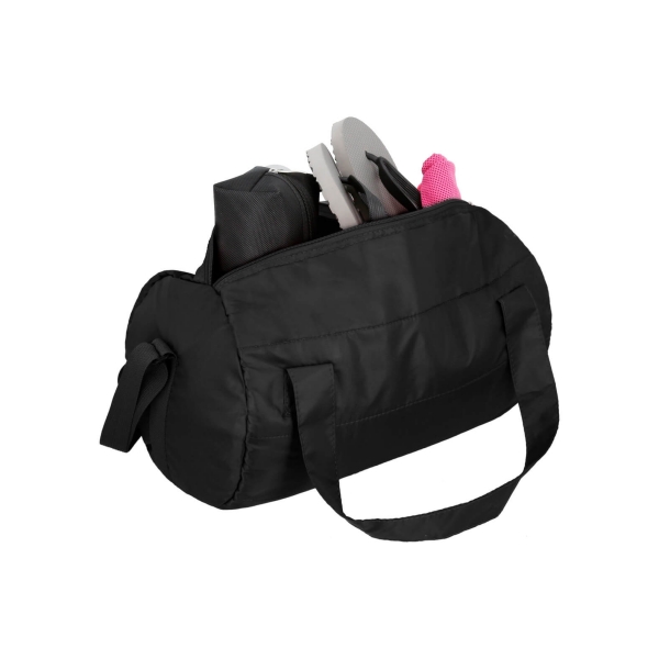 Descripción: Maleta deportiva de 1 compartimento con bolsa frontal, bolsa lateral de cierre, asas, fuelle de 27 cm y correa ajustable.