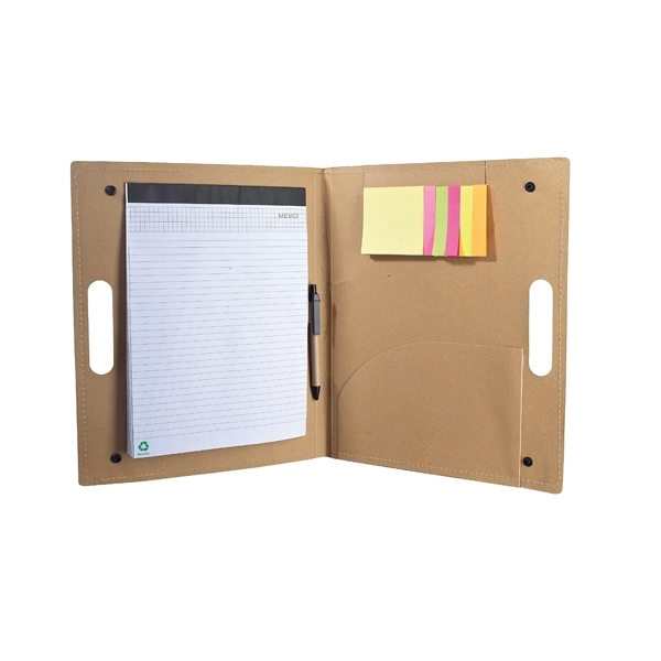 Descripción: CARPETA NATURE(Carpeta ecológica. Incluye block de raya tamaño A4 con 20 hojas, bolígrafo y notas adheribles.) - Material: Cartón / Papel Reciclado.