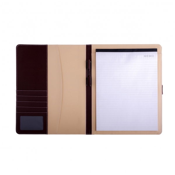 CARPETA ROYAL DE CURPIEL CON BLOCK Y PORTA PLUMA PROMOCIONAL