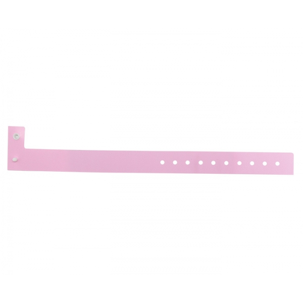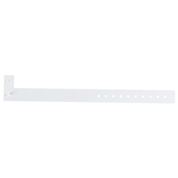 Descripción: Brazalete plastificado mate, irrompible, con broche de seguridad, se adapta a muñeca. Área máxima de impresión: 9 x 1.2 cm.