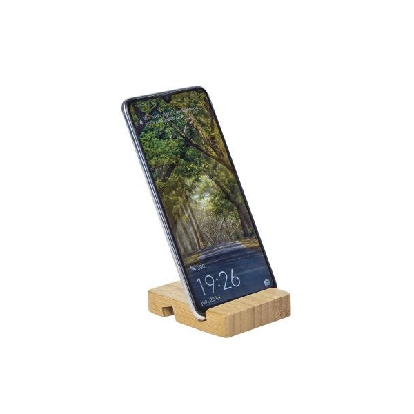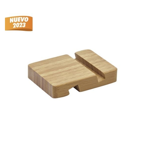 Descripción: Soporte de bambú para smartphone o tablet. Incluye dos ranuras con diferente grosor para adaptarse a diversos dispositivos.