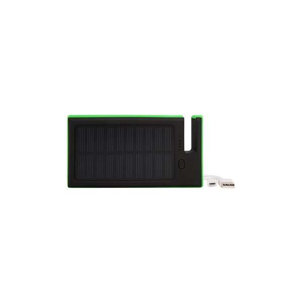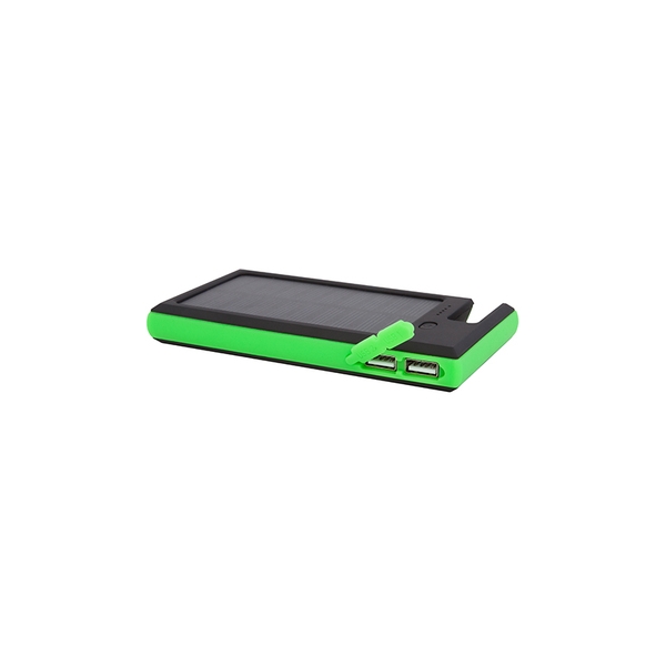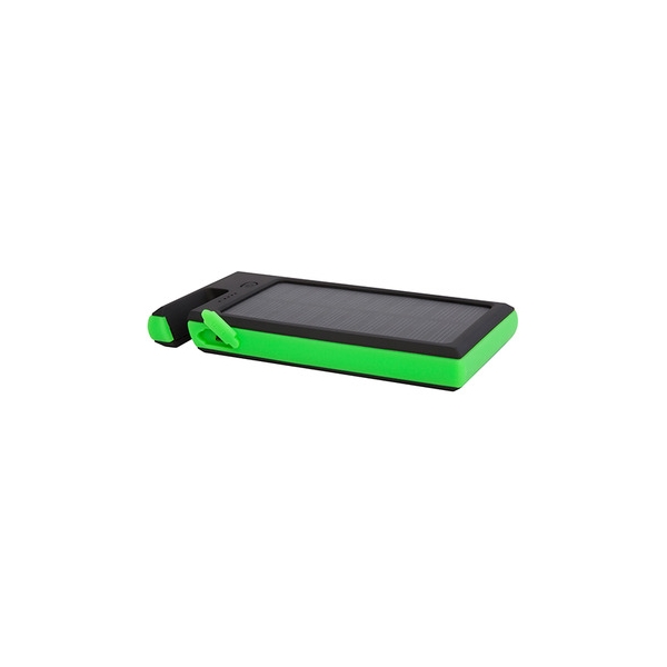 Descripción: Plástico. Capacidad 6000 Mah. Cargador móvil para Smartphone, GPS y cámara. Recargable por cable USB o panel solar. Con protección de silicona en los laterales. Soporte para teléfono. Linterna que se enciende con doble clic en el botón power. Incluye cable micro USB. Función de protección contra la sobrecarga/descarga extrema. Incluye manual de instrucción y caja de regalo.