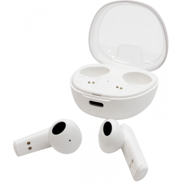 Descripción: Plástico ABS. Audífonos bluetooth con imán, se conectan al celular de forma inalámbrica. Función táctil de encendido, apagado, avance, retroceso y pausa. También permite responder, rechazar o finalizar una llamada. Estuche con indicador luminoso que permite cargar la batería de los audifonos. Capacidad de carga: 200 mAh. Capacidad de batería de litio por auricular: 30 mAh. Bluetooth V5.3. Rango de alcance: 10 metros. Tiempo de reproduccion autónomo: 3h aprox. Tiempo de carga de la batería: 2h. Cable de carga USB tipo C. Presentación en caja de regalo.