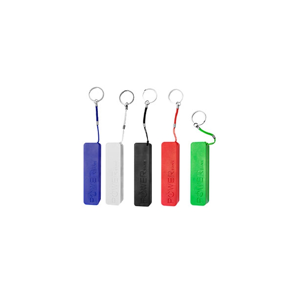 Descripción: Power bank plástica rectangular. Capacidad de 2,600 mAh. Incluye cordón y cable multiconexión.