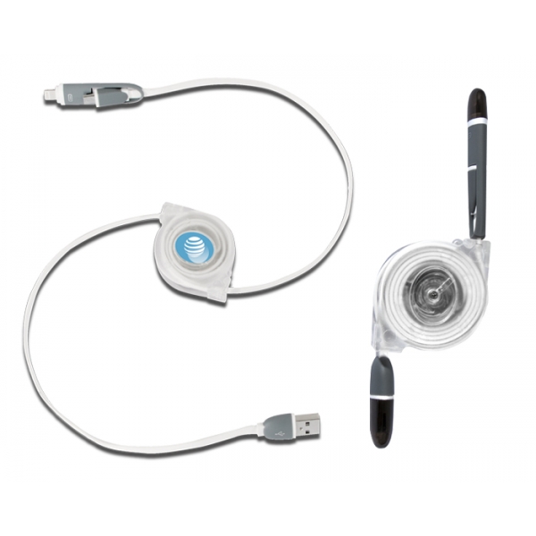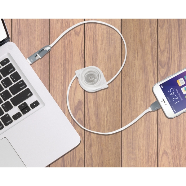 Descripción: Cable retractil para carga y trasnmision de datos, para dispositivos Iphone y Android
