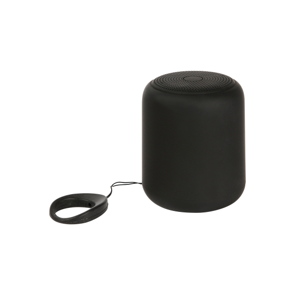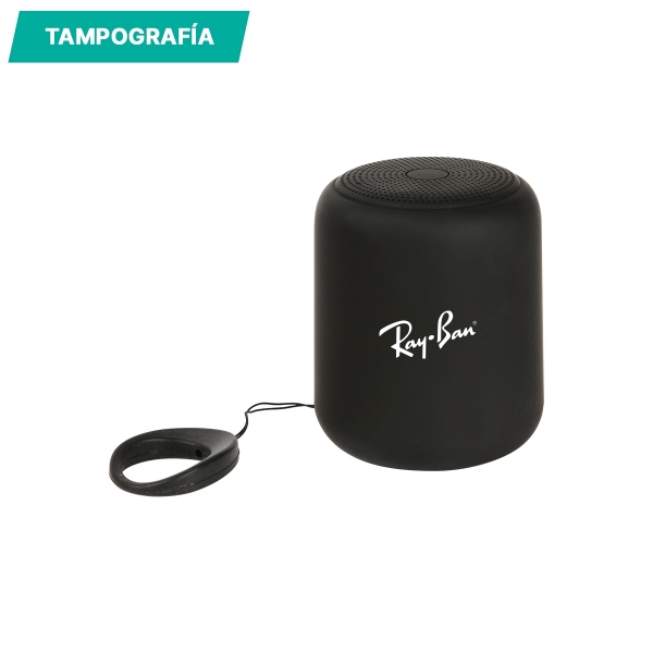 Descripción: Bocina inalámbrica portátil fabricada en plástico ABS con acabado suave al tacto tipo goma. Cuenta con una frecuencia de 20KHz. El tiempo de carga es de 2 a 3 horas, resistente al agua con puerto de carga tipo C, tiempo de trabajo de 3.5 a 4.5 horas.