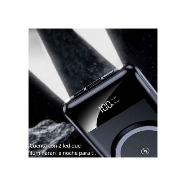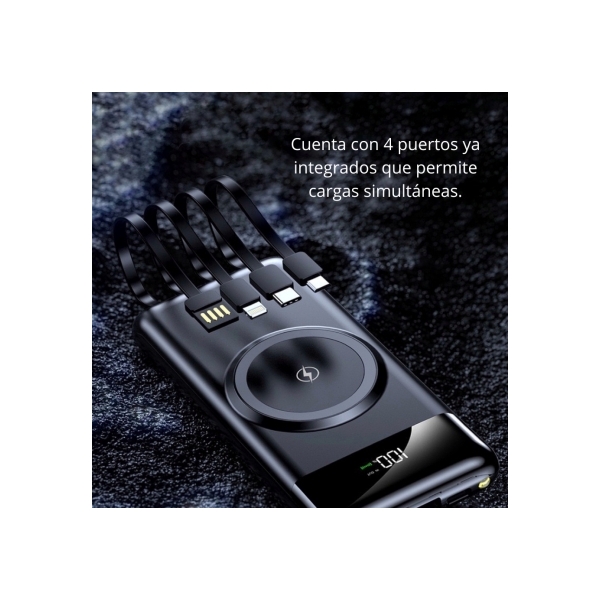 Descripción: Power Bank Qi Inalámbrica Li-Polymer Con nuevo diseño de 4 entradas integradas. Puede cargar hasta 4 dispositivos al mismo tiempo. Ideal para utilizar en viaje o para uso familiar. Aspecto discreto y elegante. Carga de alta velocidad hasta 5W.