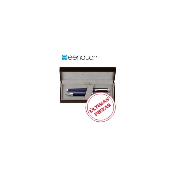 Descripción: Set de bolígrafo y roller de latón con recubrimiento en color azul obscuro. Ambos de tinta azul. Se entregan en estuche elegante de color negro.