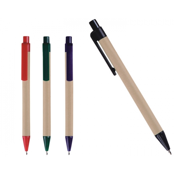 Descripción: Bolígrafo de papel reciclable, clip y punta de plástico. Mecanismo de click.