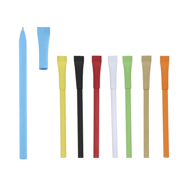Descripción: Bolígrafo de cartón reciclado con tapa en forma de popote.