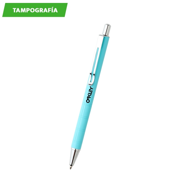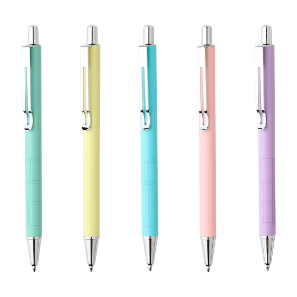 Descripción: Bolígrafo con barril de aluminio en acabado de tonos pastel, con clip y punta cromados. Tinta de escritura negra.