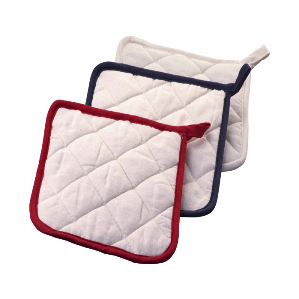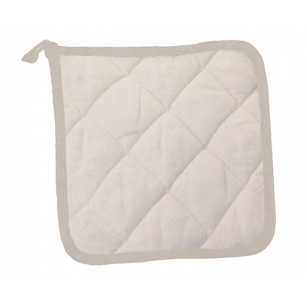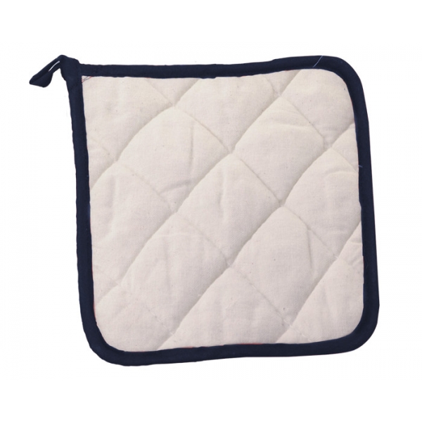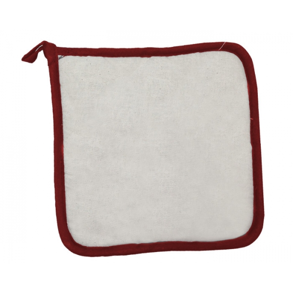 Descripción: Sujetador de utensilios calientes, de tela tipo Manta con detalles al filo y presilla para colgar.
