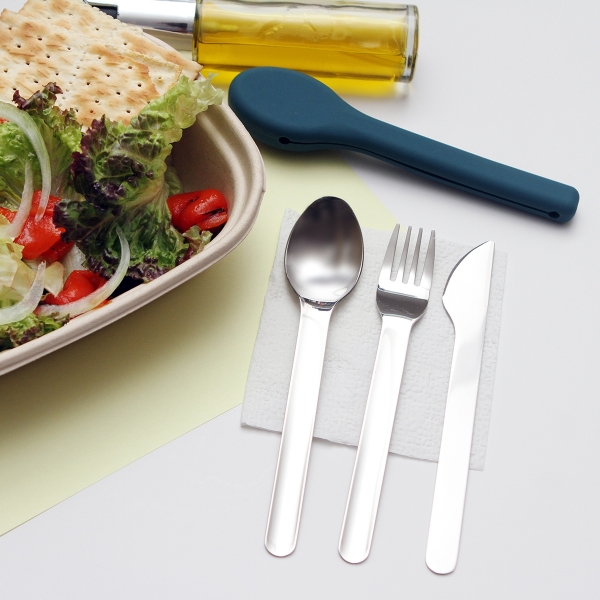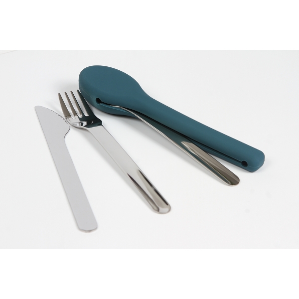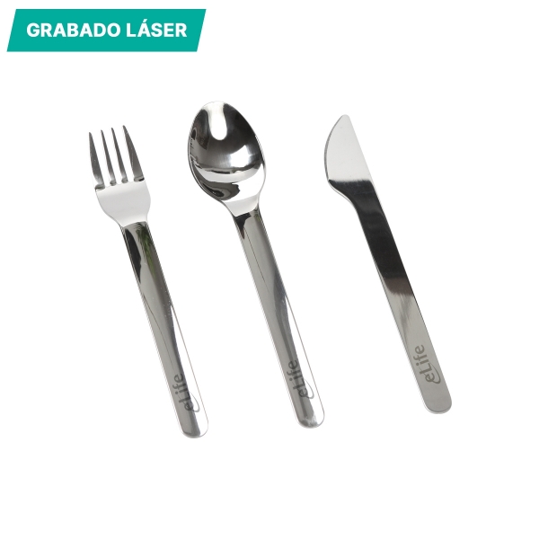 Descripción: Juego de cubiertos fabricados en acero inoxidable con cubierta de silicón. Incluye cuchillo tenedor y cuchara. Incluye caja de cartón individual. Es ideal para traerlo siempre contigo y evitar usar cubiertos desechables.