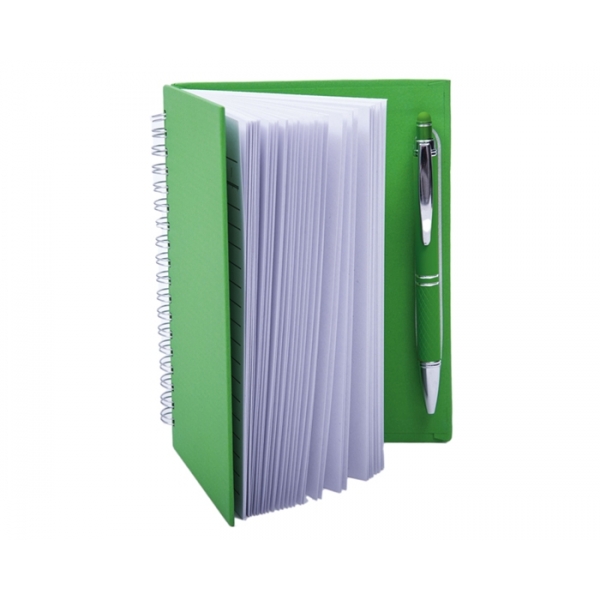 Descripción: Libreta personal con espiral y 70 hojas rayadas (140 páginas). Cuenta con imán en la parte trasera para sostener bolígrafo metálico. (No Incluye bolígrafo).
