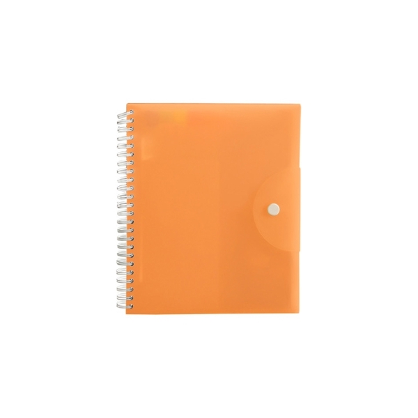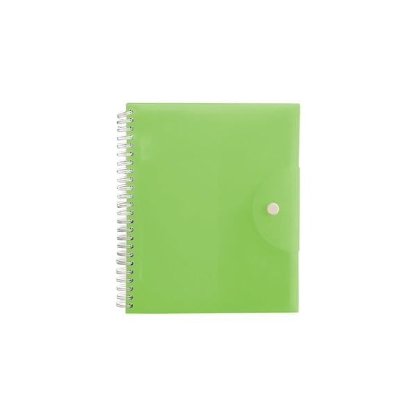 Descripción: Libreta de pastas metálicas con broche y notas adheribles.