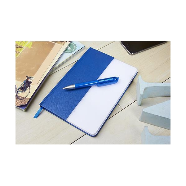 Descripción: LIBRETA BICOLOR BILKA(80 Hojas de raya. Incluye separador de hojas.) - Material: Curpiel / Plástico.