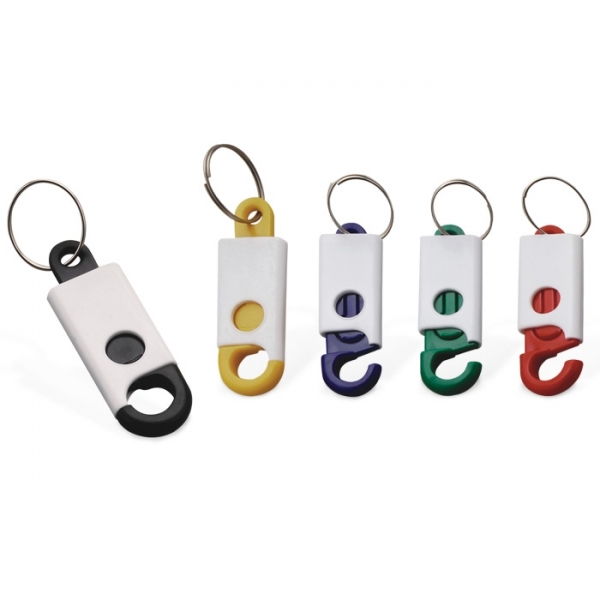 Descripción: Llavero de plástico con gancho y arillo metálico.