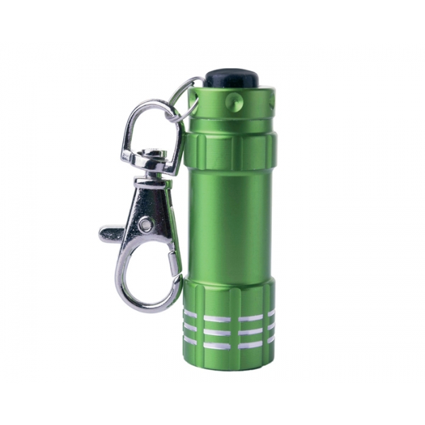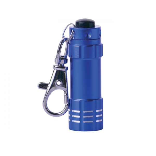 Descripción: Llavero metálico con linterna, luz blanca de 3 LED de alta intensidad, botón de encendido con goma de protección; Incluye baterías.