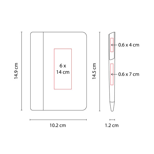 Técnica de impresión: Termograbado en Libreta / Serigrafía en Bolígrafo
