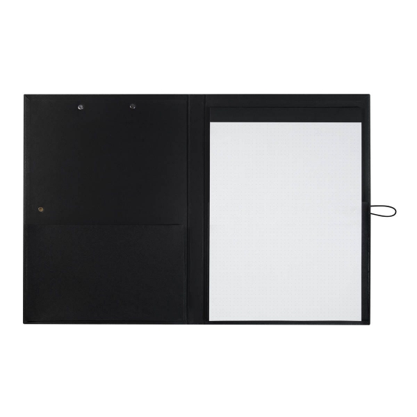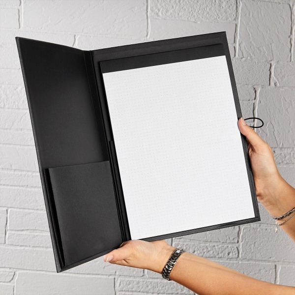 Reseña: Ideal carpeta para guardar documentos importantes se cierra con un elástico evitando que se caigan además de su elegante y funcional diseño incluye un block para notas.