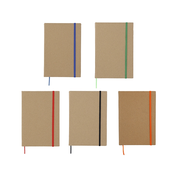 Descripción: Libreta ecológica con banda elástica para sujetar cubierta, separador y 90 hojas rayadas