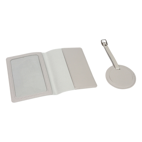 Descripción: porta pasaporte con identificador de maleta fabricados en curpiel color sólido. El identificador en forma circular tiene una correa ajustable para sujetar en cualquier tipo de maleta. El porta pasaporte cuenta con la medida perfecta para tener este documento personal seguro en tus viajes además de dos compartimentos, uno con ventana transparente y otro de curpiel.
