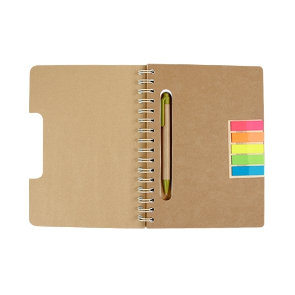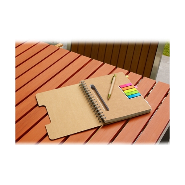 Descripción: LIBRETA ECOLóGICA JOLIET(100 Hojas de raya. Incluye notas adheribles en 5 colores, bolígrafo ecológico y espiral metálico doble.) - Material: Cartón / Espiral Metálico.