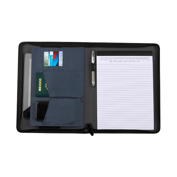 Descripción: CARPETA HAEDI(Incluye block de raya tamaño A4 con 20 hojas, elástico para bolígrafo, compartimento para Smartphone, Ipad y tarjetas. No incluye bolígrafo.) - Material: Curpiel / Poliéster.