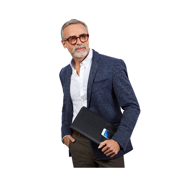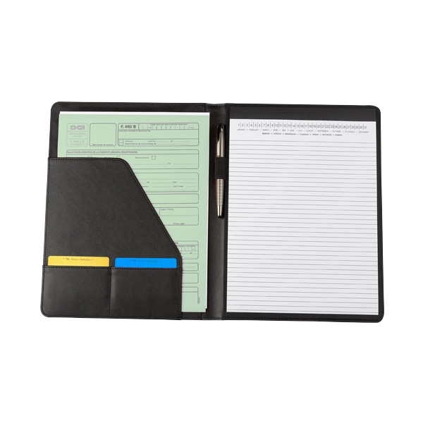 Descripción: CARPETA NIROU(Incluye block de raya tamaño A4 con 20 hojas, elástico para bolígrafo, compartimento para smartphone, documentos y tarjetas. No incluye bolígrafo.) - Material: Curpiel.