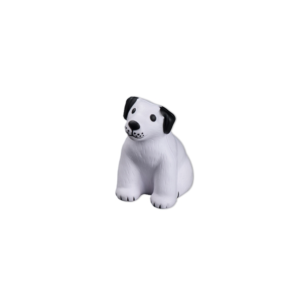 Descripción: Perrito de hule poliuretano anti estrés. En color blanco con detalles negros.