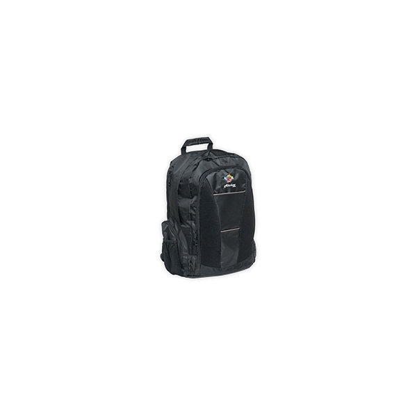 Descripción: Mochila de poliéster 600 pp en color negro. Cuenta con 3 compartimientos y bolsas laterales.