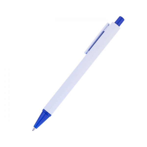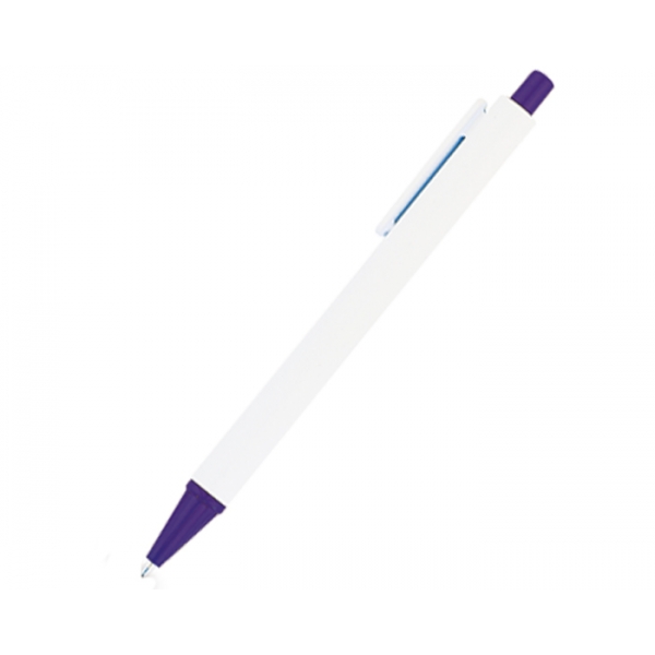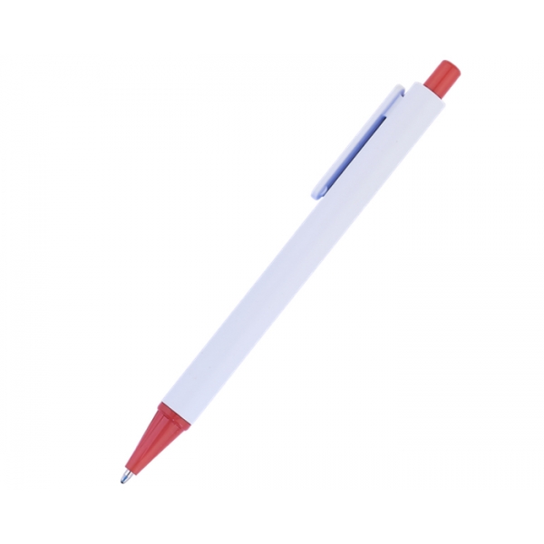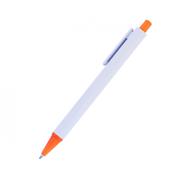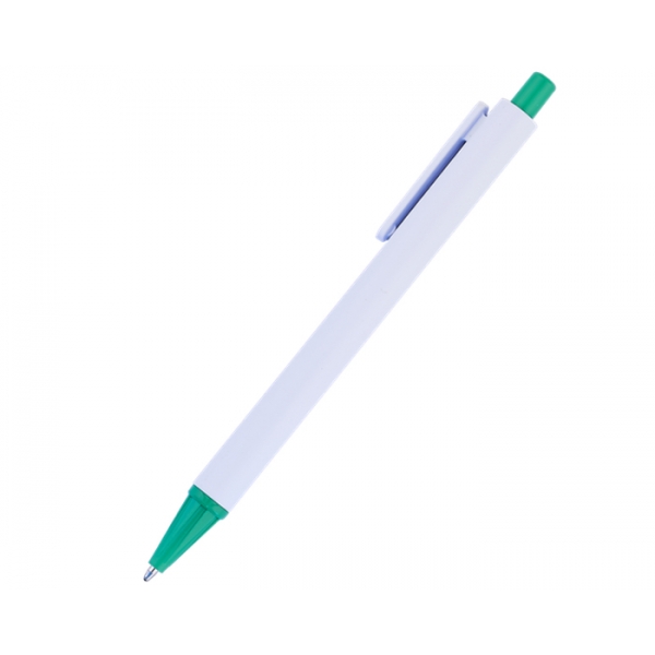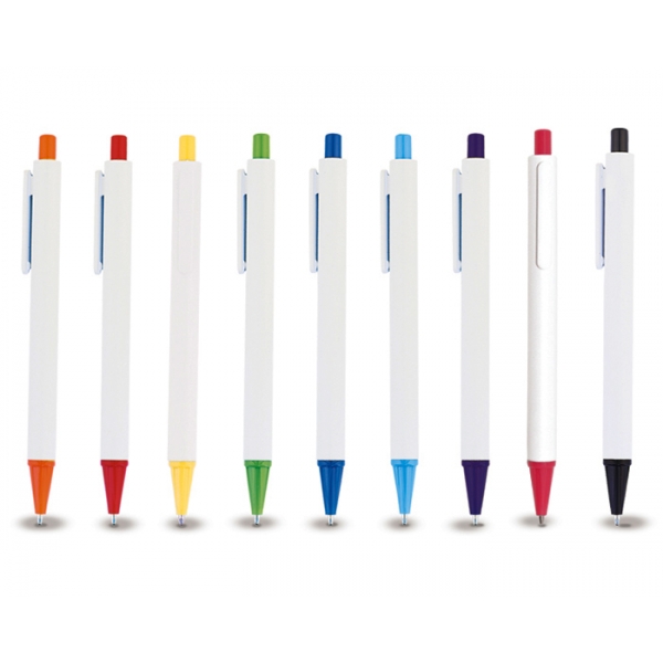 Descripción: Bolígrafo económico plástico de cuerpo blanco con punta y botón en color. Mecanismo de click.