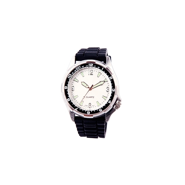 Descripción: Reloj con caja metálica, dial en arillo giratorio y correa de plástico, maquinaria metálica japonesa de alta precisión y estuche metálico.