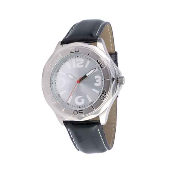 Descripción: Reloj con caja metálica, dial grabado en el bisel, correa de piel y arillo giratorio, maquinaria metálica japonesa de alta precisión y estuche metálico.
