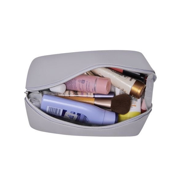 Reseña: Cosmetiquera de curpiel y forro de poliéster, cuenta con un diseño que permite una mayor abertura para fácil acceso