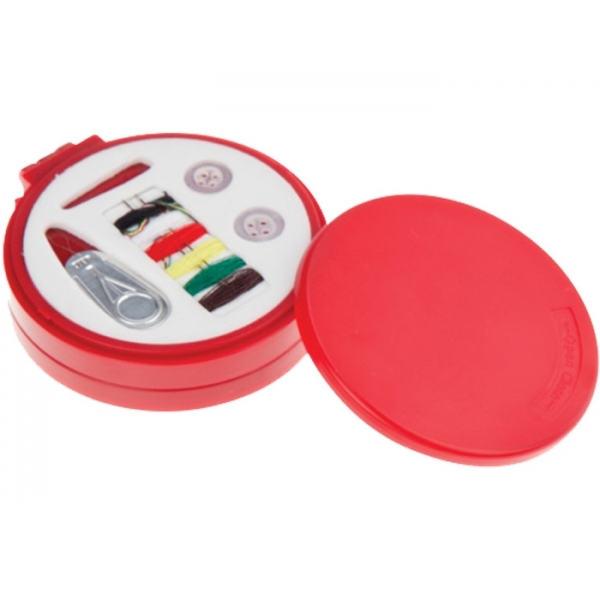 Descripción: Estuche plástico. Incluye: Costurero con hilos, aguja, botones, ensartador de agujas y un seguro. Cepillo retráctil y espejo por el reverso.