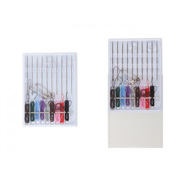 Descripción: Costurero portátil. Incluye aguja, botones, seguros, variedad de hilos y alfileres.