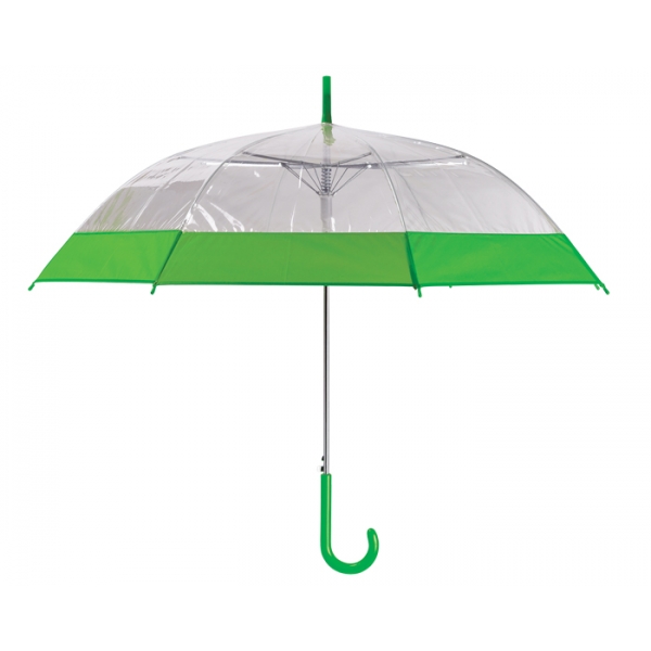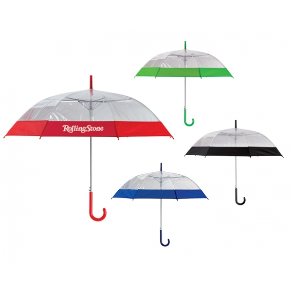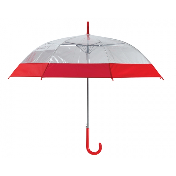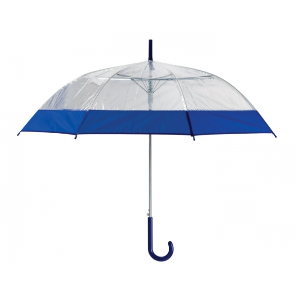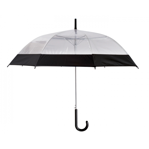 Descripción: Paraguas de PVC transparente con banda de color y mango curvo de plástico. Apertura automática.